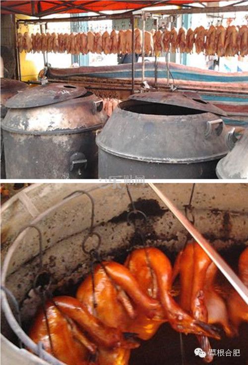 十九、韩老五烤鸭(大铺头): 光看挂在门口成排的生鸭子和成列的烤鸭箱,就够让人震撼的了。据老板称他们家一天能卖五六百只烤鸭,23元/只,12元/半只。跟一些自动旋转烤鸭箱最大的区别是,这是用明火烤。烤鸭的皮被烤得很薄,咬一口脆香,肉则细嫩入味,让人食指大动。 推荐指数:★★★ 地址:合肥市科学院路与荷花东路交叉口